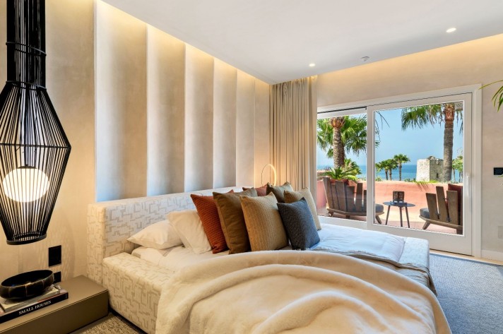 Fully renovated top quality 4-bedroom penthouse in the New Golden Mile . Frontline beach, south facing, sea views, quiet and private. Direct access to the beach. Spacious living and dining area with fully fitted open plan kitchen (Siemens appliances) and direct access toa large terrace with bbq, master bedroom ensuite, three guest bedrooms and thr… Read more…