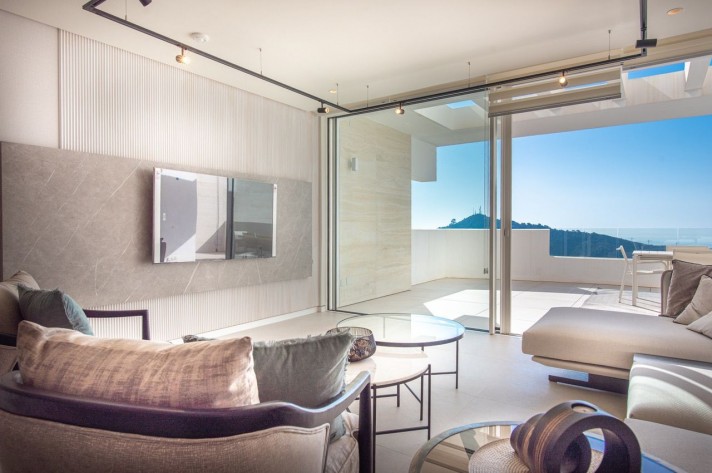Palo Alto. This 1st-floor luxury apartment has a spacious and beautiful interior leading out to a huge terrace that offers fantastic panoramic views of the Mediterranean Sea and mountain views with the most spectacular sunrises you can view.