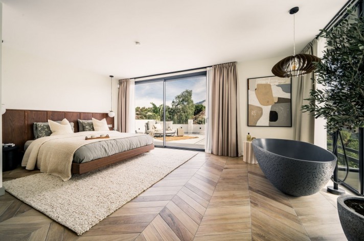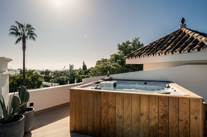 Welcome to this stunning renovated villa nestled in a prestigious gated community in the heart of Nueva Andalucía. This spacious villa features 5 bedrooms and 5 bathrooms, ensuring plenty of room for your family and guests. Prepare to be captivated by the breathtaking combination of stunning sea and mountain views creating an