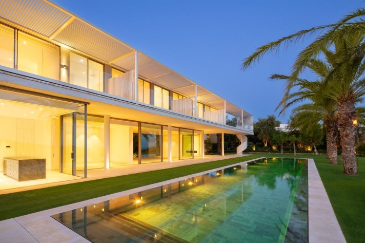 Exuding opulence and refinement, this exceptional villa redefines the very notion of luxury golf resort living. Positioned on an elevated plot, it offers breathtaking panoramic views of the golf course and Mediterranean, while its expansive outdoor areas encompass meticulously manicured gardens and a magnificent swimming pool. Enveloped by lush palm trees and abundant flora, this residence provides an exquisite outdoor sanctuary for year-round enjoyment. Bathed in natural light, thanks to an abundance of floor-to-ceiling glass doors, the ground floor seamlessly connects to the garden, fostering a harmonious indoor-outdoor flow. The property is distributed over 3 floors, with a basement housing a laundry room, facility room and bespoke wine cellar. Access to the basement was cleverly integrated to the property through a hidden cylindrical door. The interior spaces are elegantly designed, located on the ground floor level – features neutral soft tones and unique materials that imbue the home with an unparalleled sense of individuality. The kitchen, equipped with top-of-the-line Gaggenau appliances, showcases bespoke cabinetry and a stylish kitchen island, while the light wooden flooring throughout the house evokes a serene and tranquil ambiance. The property’s manicured landscapes, carefully curated within its boundaries, create a captivating backdrop visible from the ground floor. The upper level is dedicated to the bedrooms, each with its own private terrace and separated by stunning white dividers. The architectural prowess of Vicens & Ramos is evident from every angle, with the property’s impressive entrance leaving a lasting impression on all who arrive. With its privileged frontline golf position, awe-inspiring views and an unwavering commitment to excellence, this masterpiece stands as a truly incomparable residence within the exclusive Finca Cortesin Resort.