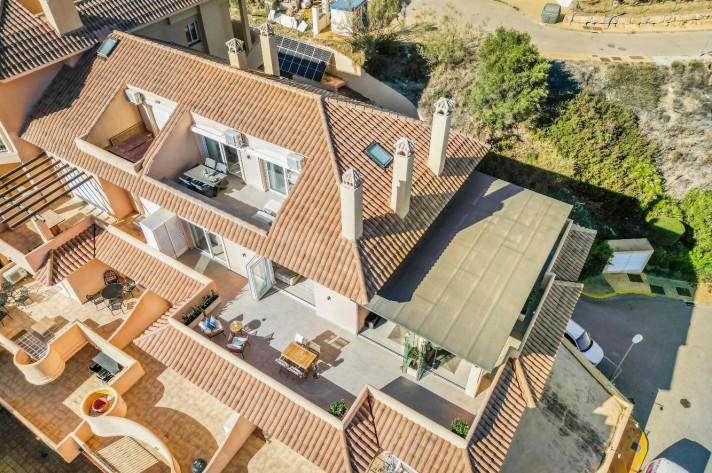 The home has been tastefully furnished by professional decorators to suit the modern family. On the first floor, we are welcomed by a bright living room with a fireplace, a guest toilet, a fully equipped kitchen, a bedroom with en suite bathroom and direct access to a terrace, as well as a fantastic family room. Generous glass sections lets the light in and create a wonderful atmosphere in this space. Here you'll find a stylish outdoor kitchen, a dining area, and lounge leading out to the terrace. Enjoy lovely hours of sunshine and a fantastic view of the Mediterranean. Upstairs there are two bedrooms with en suite bathrooms, built-in wardrobes, and direct access to a terrace with sunbeds and sea view.
