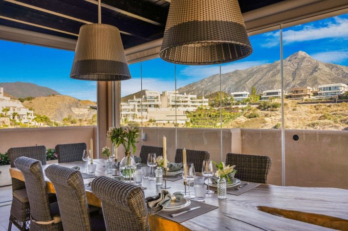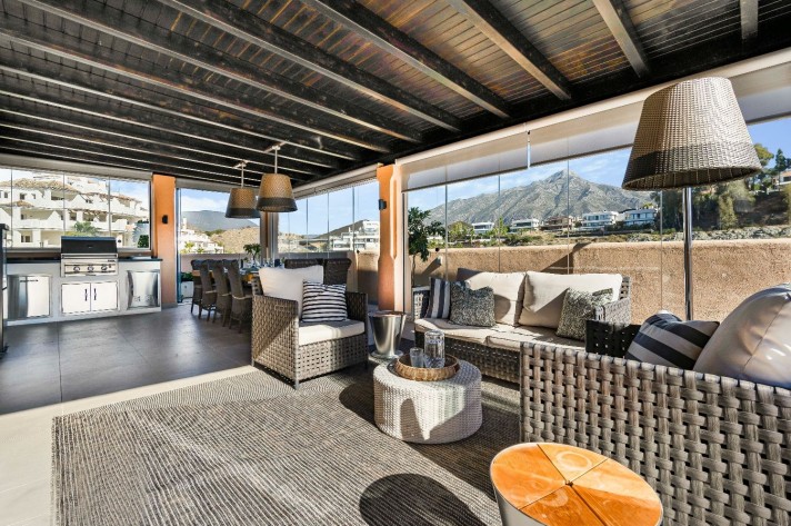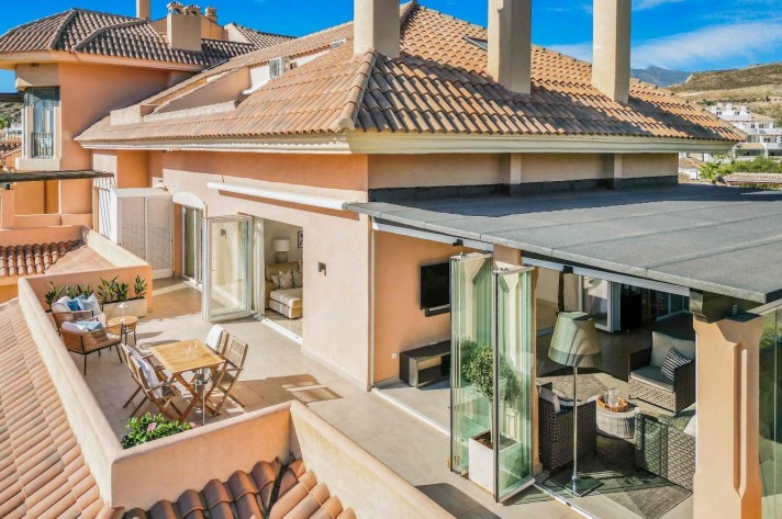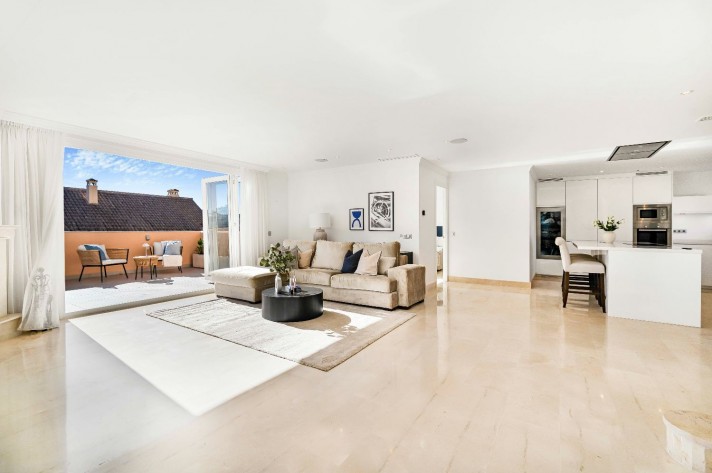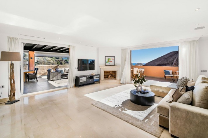 This bright and modern duplex penthouse is located in Nueva Andalucía. Here you live close to established golf courses only a short drive from the sea and Puerto Banús. The complex is known for its fantastic facilities and concierge services, making it a very popular choice for vacationers and families.