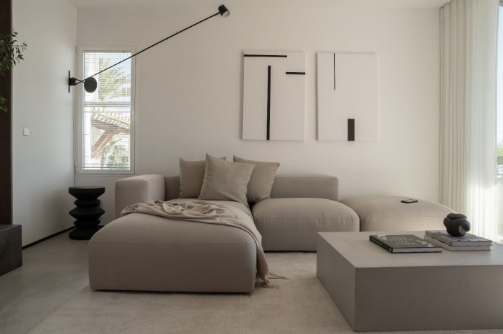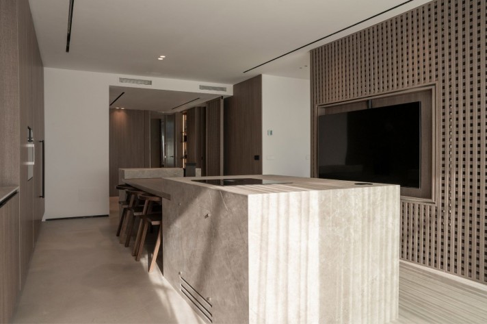 This fantastic luxury penthouse is located in one of the most beautiful frontline beach developments of the Costa Del Sol, an oasis of tranquility yet within walking distance to shops and restaurants and the charming Old Town of Estepona. The apartment itself has been fully renovated to the highest standards and it features an open-plan layout, 2 bedrooms with fitted wardrobes and 2 bathrooms en-suite with underfloor heating, plus a guest toilet. The kitchen is separated from the living area by a custom designed wooden panel which features a rotating flat screen TV. Thanks to its southwest orientation and large glass windows, the penthouse is very bright and offers breathtaking sea