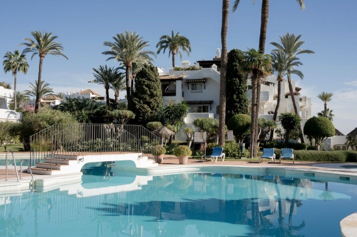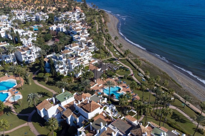 This prestigious residential complex features direct access to the beach and promenade, 7 swimming pools of which one is heated, award winning tropical gardens, 3 restaurants, a gym, 24hrs security, 3 padel courts, 5 tennis courts and a small football pitch. This resort is an ideal holiday destination indeed! Great access to to the main road joining Estepona and Marbella.