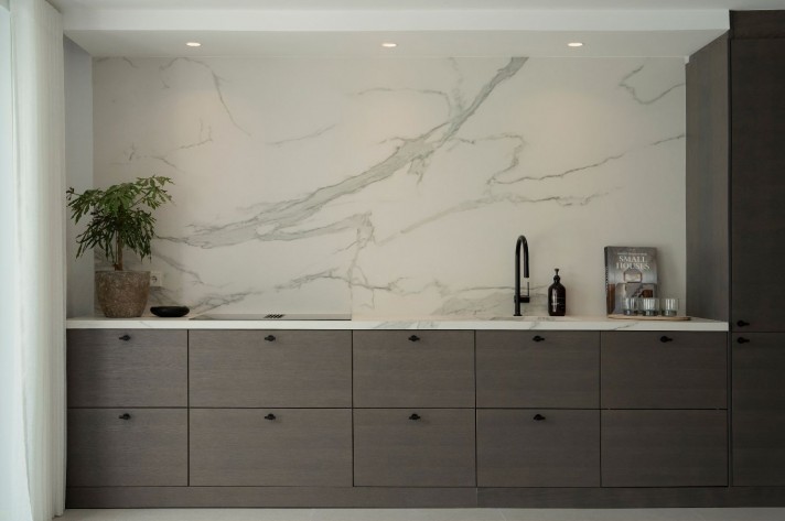This villa is divided into 2 floors offering a living room with open plan custom made kitchen and Miele appliances. The dining area gives you direct access to the outdoor kitchen