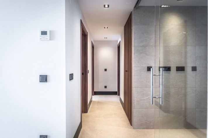 As you enter, you're greeted by sleek, modern finishes that exude sophistication and style. The spacious living area boasts floor-to-ceiling windows, allowing natural light to flood the space while offering breathtaking views of the shimmering sea. Step outside onto your expansive terrace, an inviting extension of your living space where you can take in the panoramic vistas.