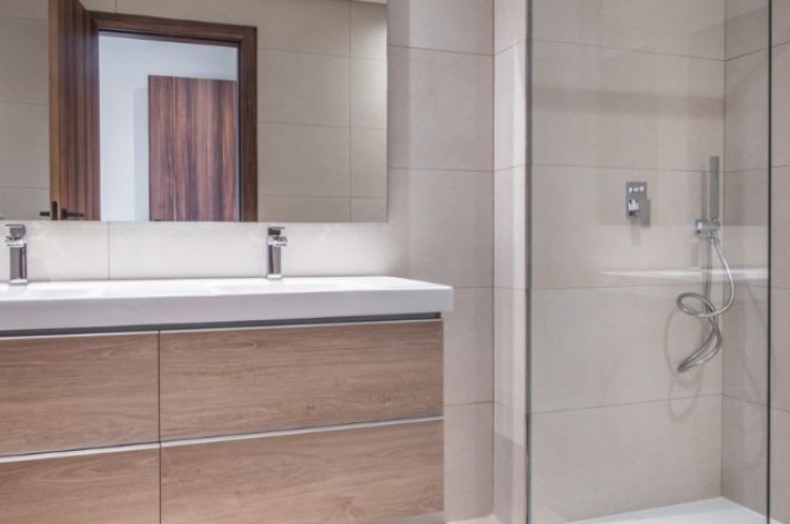 This brand new, luxurious 2-bedroom, 2-bathroom elevated ground floor apartment is nestled in a serene gated complex adjacent to a picturesque lake.