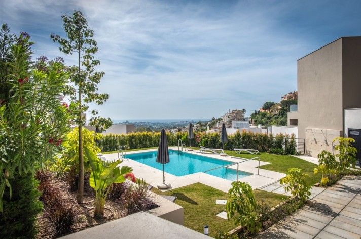 The gated complex offers residents exclusive access to sparkling pools, surrounded by meticulously manicured gardens, providing a serene oasis to relax and unwind.