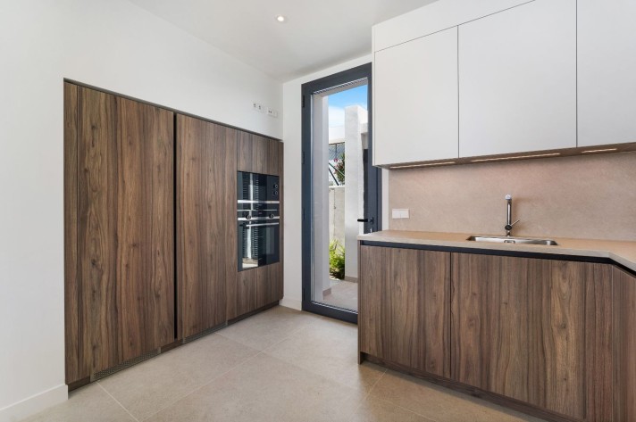The villa has a total of six bedrooms, five bathrooms, and a guest toilet. One of the upstairs bedrooms is currently furnished as an office with a desk and chair. All rooms on this level have direct access to the highlight of the home: a fantastic terrace with views of the mountains and the sea. Here you can create your own oasis with barbecues and social gatherings all year round.