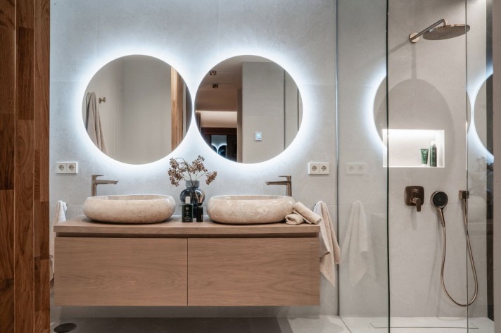 third bedroom has access to a separate bathroom. All bathrooms are in excellent condition and feature underfloor heating throughout.