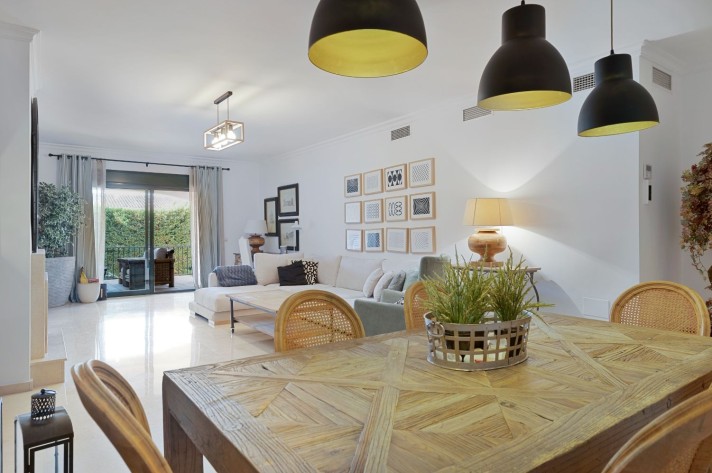 Beautiful spacious 3-bedroom apartment in Jardines de la Colonia. South facing and private. Walking distance to San Pedro town center and the beach. Entrance hall way, living and dining area with fireplace, fully fitted kitchen with breakfast corner and a separate laundy room. Direct access to the 65m2 covered and open terrace. Master bedroom… Read more…