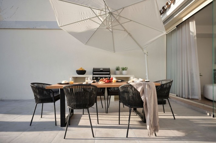 Recently renovated with custom-made furnishings and marble sinks, this apartment reflects a refined taste and attention to detail. Its private garden and pool, coupled with access to two communal pools, provide a perfect blend of intimacy and community living.
