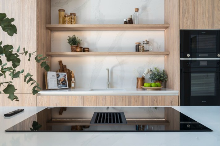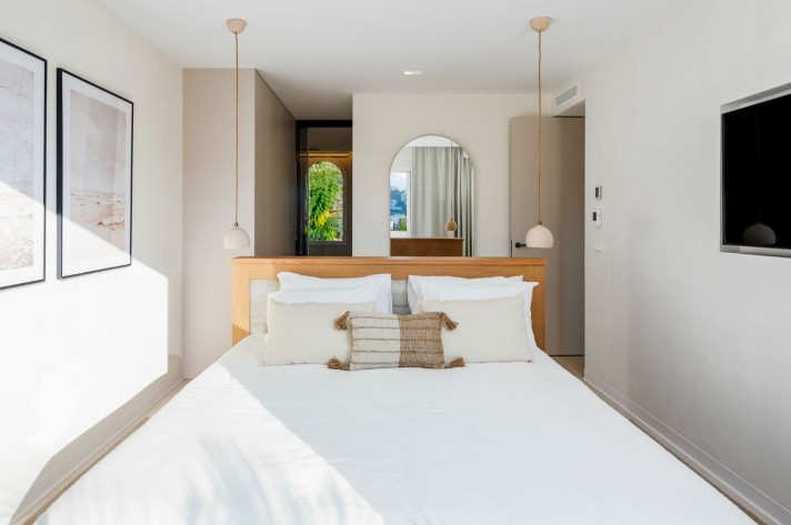 The first floor welcomes you with an expansive living area seamlessly connected to a gourmet kitchen featuring premium Smeg appliances. Step out onto the terrace to enjoy views to hills and the sea. A guest toilet adds convenience to this level.