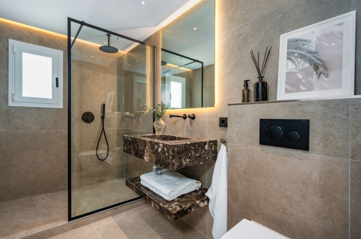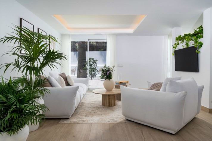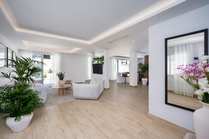 Step into this property, a completely renovated, single-floor villa offering the epitome of modern mediterranean-style living in the heart of Nueva Andalucia. This 4-bedroom, 3-bathroom gem has just been renovated in 2023 with high-quality materials like wood, ceramic, and marble, and comes furnished with custom-made, high-quality pieces. Appliances are from the trusted brand, Bosch.