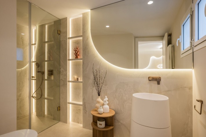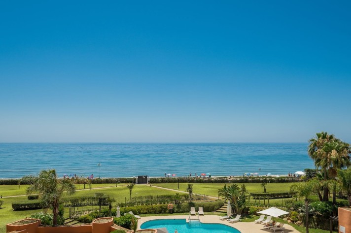 This outstanding property impresses with an exclusive interior design, elegant contemporary furniture, tailormade wardrobes, a new Siematic designer kitchen with Miele appliances, a Bang & Olufsen sound system, an electric fire place and stylish Kettal outdoor furniture. From both terraces you can enjoy the true beauty of a frontline beach location, with sea views that follow the shoreline and Mediterranean to the outlines of Gibraltar and North Africa. The penthouse comes with 2 underground parking spaces and a storage room.