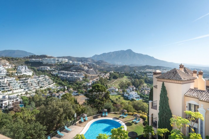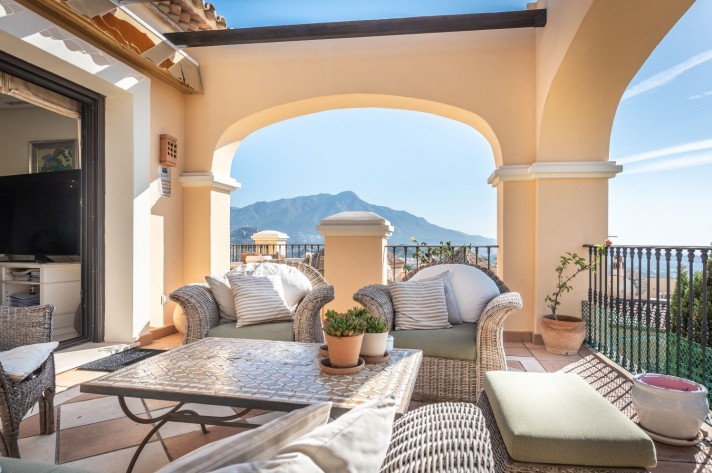 This exceptional penthouse is located in a highly sought-after residential complex of Buenavista, perched on the hillside of La Quinta, it boasts stunning views of the sea, valley, golf course, mountains, and picturesque countryside. The complex is conveniently just a short drive from the vibrant town of San Pedro Alcántara on one side and Nueva Andalucía on the other, providing residents with a diverse