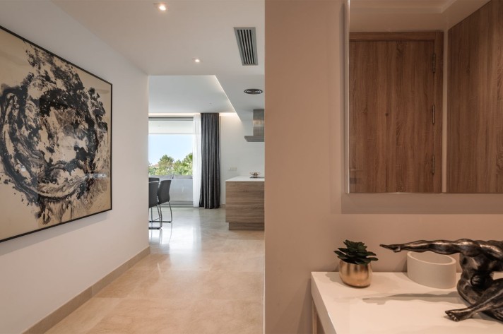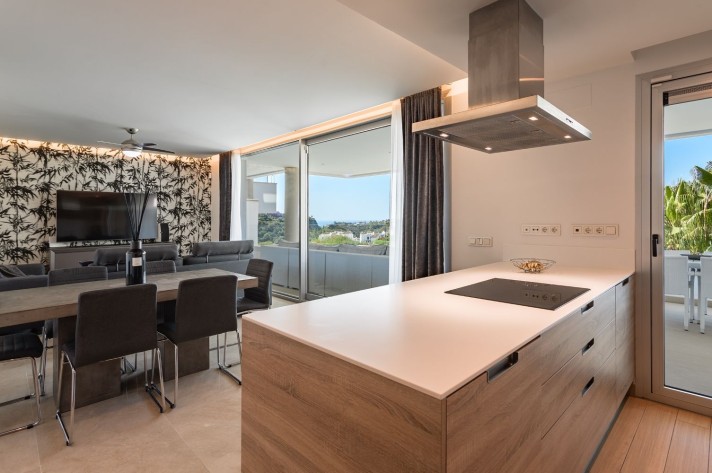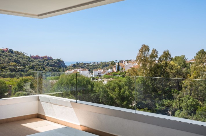 Contemporary 3-bedroom brand new apartment with panoramic views in La Reserva de Alcuzcuz, Benahavis. The property features: entrance hall; bright and spacious living-dining room with access to the terrace; open plan fully fitted kitchen with a laundry room and equipped with top quality appliances; en-suite master bedroom with access to the terrace; two further guest bedrooms sharing a bathroom. This apartment is ideal as a holiday home, located in a tranquil area, with panoramic views over the landscapes and within a short drive to the beach.