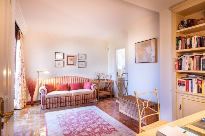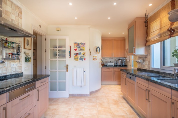The spacious living and dining area opens onto a terrace that provides both sun and shade all day long, offering stunning views of the swimming pool, gardens, and La Concha mountain from the rear terrace.