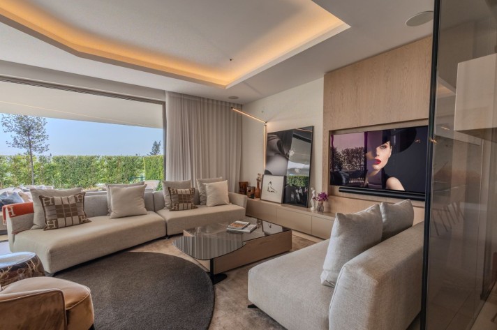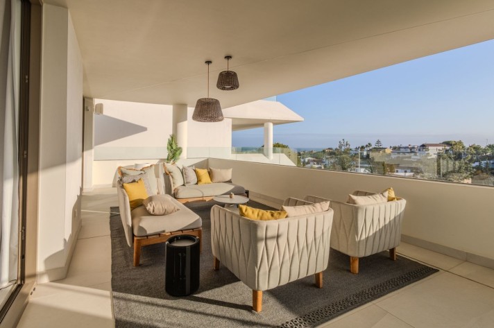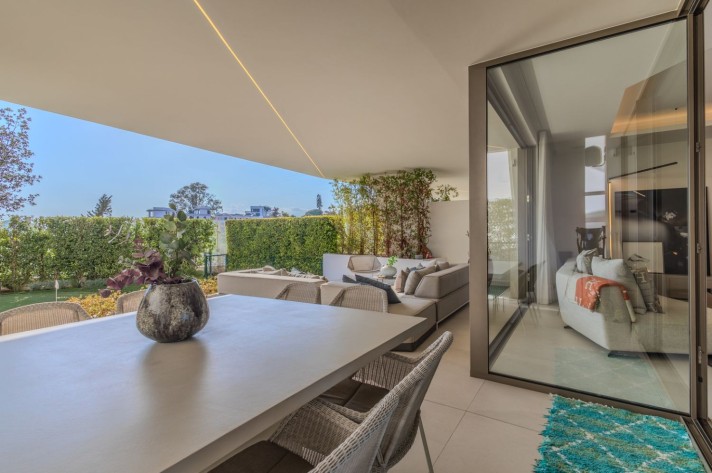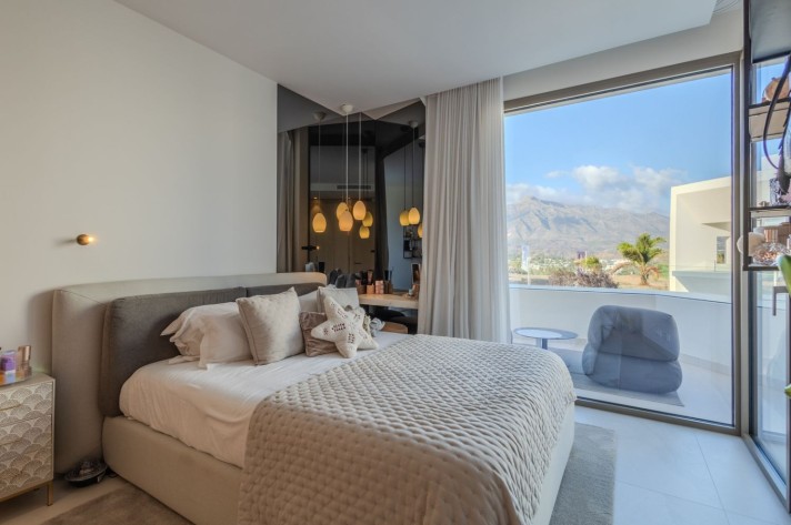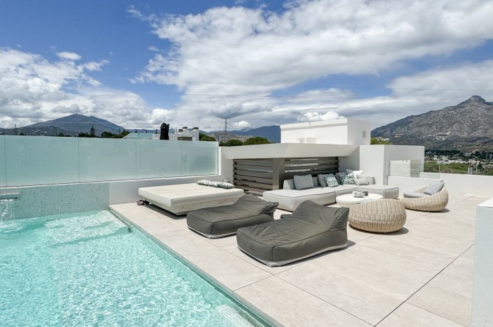 Welcome to this splendid semi-detached property, part of an exclusive housing project. Nestled in a secure community in Nueva Andalucia, this modern architectural jewel shines with its clean lines, mesmerizing geometric exterior, and chic natural materials in soothing neutral shades.