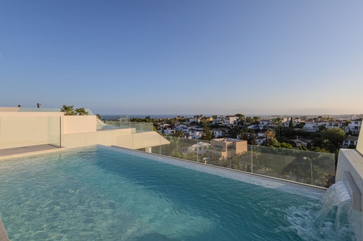 The property invites you to embrace the outdoors with a covered terrace perfect for dining and relaxation. A custom-designed solarium with a private pool offers awe-inspiring panoramic views of the Valley, La Concha, the Mediterranean Sea, and Gibraltar. Spanning four floors, this outstanding home includes four bedrooms, each with ensuite bathrooms, a top-of-the-line kitchen, and underfloor heating for ultimate comfort. A private garage with space for up to two/three cars ensures unparalleled convenience. This modern home also provides easy access to local amenities and essential services. As a bonus, it comes fully furnished, with the interior design crafted by Ambiance. We invite you to immerse yourself in luxury living in Marbella with this extraordinary property.