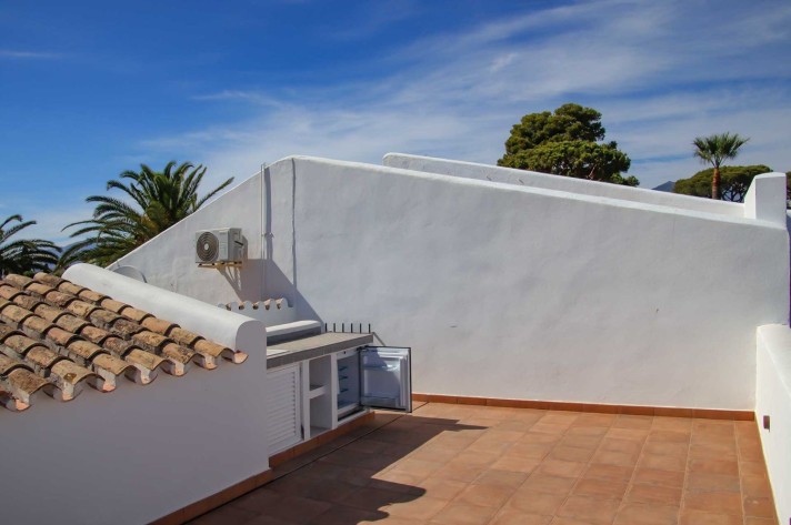 This luxurious 2-bedroom penthouse in Nueva Andalucía, Marbella, is a blend of contemporary elegance and Mediterranean charm. The open-plan design connects the living, dining, and kitchen areas, with high-quality materials and minimalist finishes. The kitchen is equipped with state-of-the-art appliances, ensuring comfort and functionality. The spacious bedrooms, each with elegant wooden floors and built-in closets. The bathrooms follow a minimalist aesthetic, featuring walk-in showers, integrated shelving, and natural wood accents. The private terrace enjoys a panoramic views of the Mediterranean Sea and La Concha mountain. The property also includes access to a communal swimming pool within beautifully landscaped gardens. It is located in the center of Marbella's luxury lifestyle, near boutique shops, high-end restaurants, fitness centers, and supermarkets. Puerto Banús, known for its luxury yachts, designer stores, and vibrant nightlife, is just a few minutes away. This penthouse is a rare find in today's market, making it an ideal choice for those seeking a modern, luxurious home in Marbella.