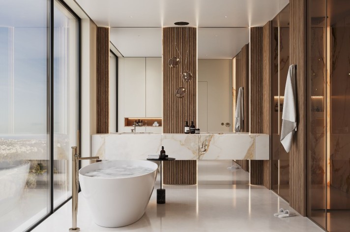 Scheduled for completion in summer 2025, this magnificent property will be equipped with top-of-the-line features such as an elevator, Jacuzzi, Sonos stereo surround system, air conditioning, underfloor heating, glass doors, fitted wardrobes, accessibility for those with disabilities, a domotic system, alarm system, and many more high-end details.