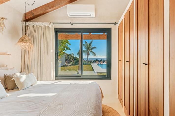 This newly completed, luxurious property in Estepona is set in the mountains with panoramic sea and Sierra Bermeja mountain views. Located just 2 km from the historic center, it offers full privacy on a 3058 m2 plot. The property includes 6 bedrooms, 2 closed kitchens, an outdoor kitchen, infinity pool, sauna, and petanque court. The main house has 4 ensuite bedrooms, a custom walk-in closet, sea-view living areas, and a large terrace. Additional features include a guesthouse, service area, sustainable elements like solar energy, and options for wellness activities or year-round rentals. Ideal for those seeking a premium property in Estepona's growing and vibrant area, this residence is a true