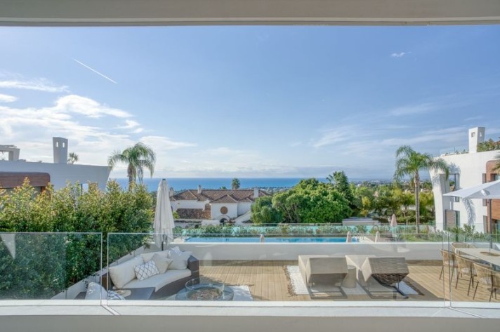 This exceptional four-bedroom, south-facing luxury property is located in the prestigious La Reserva de Sierra Blanca, Marbella. The beautifully renovated ground-floor duplex apartment has been meticulously designed and finished to the highest standards, offering refined living in a prime location. On the entrance level, you'll find an open-plan living and dining area with patio doors that open onto private terraces showcasing breathtaking sea views. The fully equipped kitchen boasts top-of-the-line appliances, and the master suite has direct terrace access. There are also two guest suites and a guest toilet. The lower level features an additional bedroom, bathroom, laundry room, and a one-of-a-kind cinema area with a bar, perfect for entertaining. Additional highlights include three private parking spaces, a storage room, and underfloor heating and hot/cold air conditioning throughout. Residents of La Reserva de Sierra Blanca enjoy meticulously maintained gardens, a swimming pool, a gym, a sauna, and a secure gated community with 24-hour security.